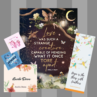 Prize: A signed paperback of In the Jaded Grove by Anela Deen + A Collection of Poems by Emily Dickinson + Art Print + Stickers + Book Plate + Postcard + Bookmark – International!